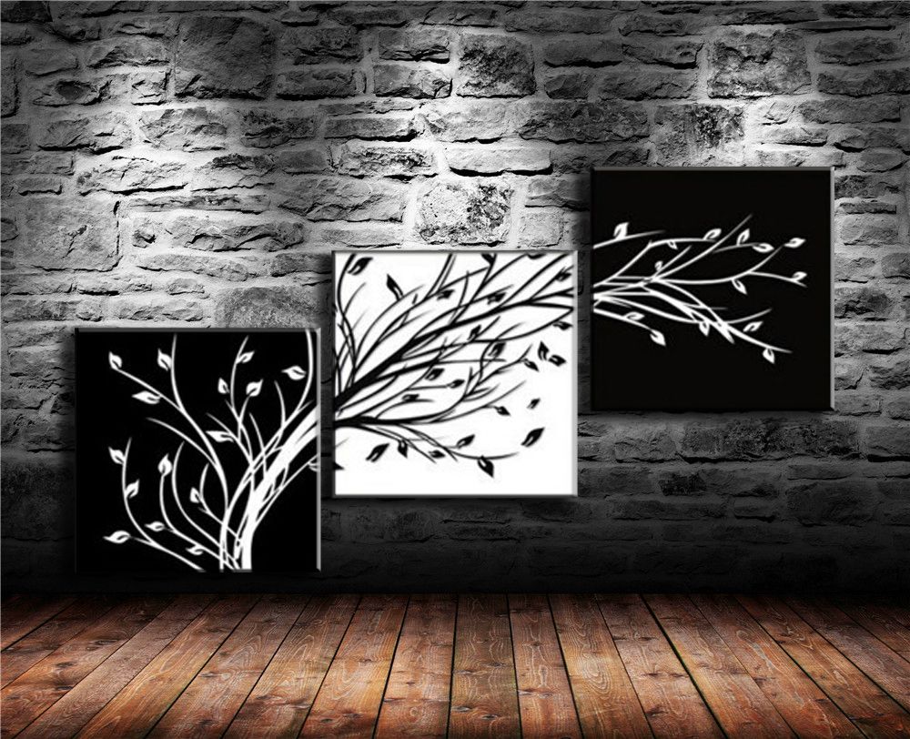 Acheter Floral Arbre Noir Et Blanc, Peinture Sur Toile 3P Salon Décoration De La Maison Peinture À Lhuile De Peinture Murale Moderne De 9,97 € Du Wujia002 | DHgate.Com